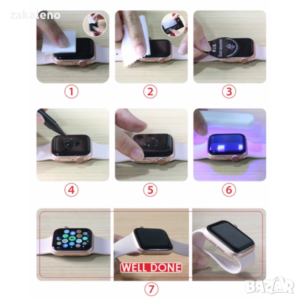 UV стъклен протектор Apple Watch 9/10/11/SE 40/41/42/44/45/46/49 Ultra
