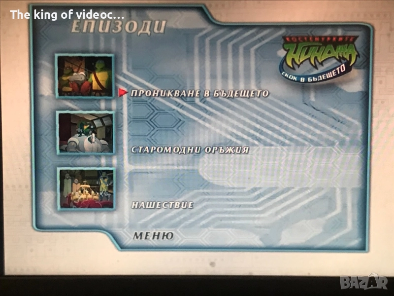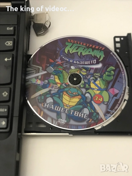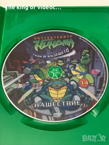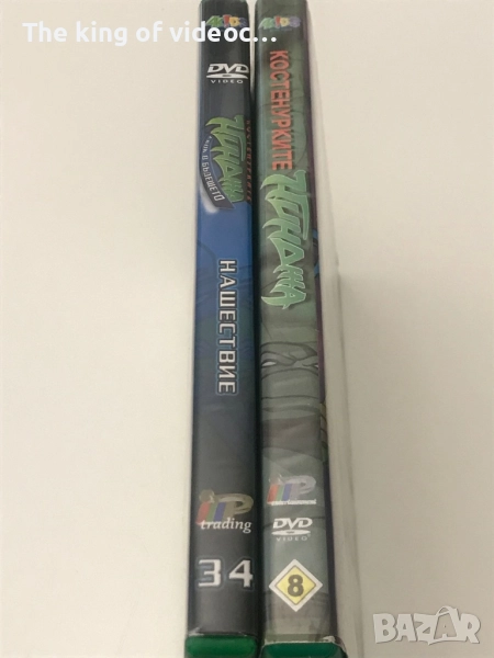 Костенурките Нинджа , епизод 8 “ Търсенето на Сплинтер “ и епизод 34 “Скок в Бъдещето - Нашествие “ . Епизод 34 е от най- новите епизоди . Отлично запазени като нови в зелени кутии . Озвучени на български език . Страхотна картина , говор и звук . И двата диска са с по три епизада . Търсенето на Сплинтер - 1 Самотният Рафаело и Хлапето , 2 Търсенето на Сплинтер - Част 1 , Търсинето на Сплинтер - Част 2 . Скок в бъдещето - Епизад 118-Проникване в бъдещето , Епизод - 119-Старомодни Оръжия , Епизод - 120 - Нашествие Времетраене по около 60 минути . На последните три снимки са снимани дисковете в работещо състояние . Това е един страхотен спомен от близкото минало на едно от най- гледаните анимации на 90-те години . Цена 15 евро за двете анимации .