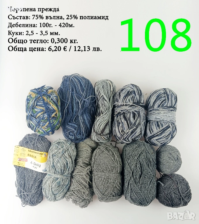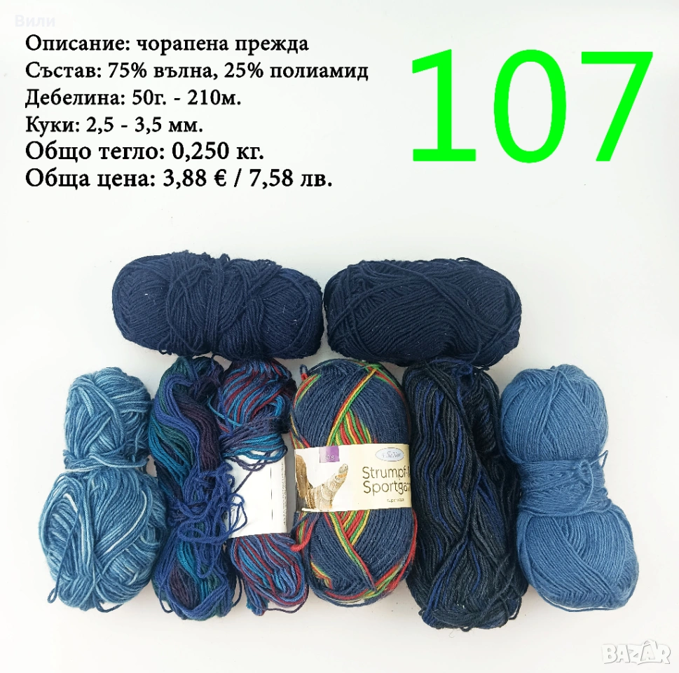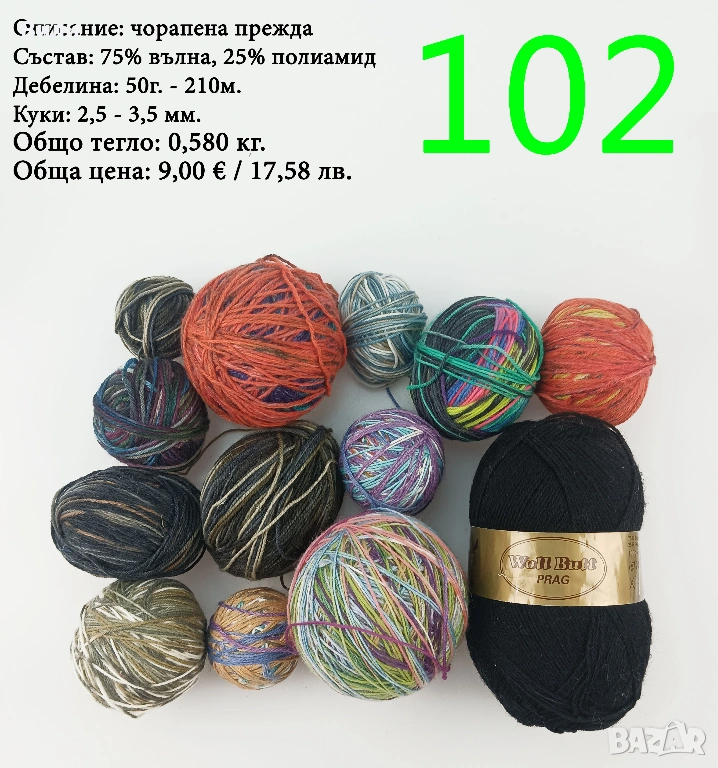 Чорапени прежди, евтини прежди в малки количества - нови и остатъци → Обява 52171080
