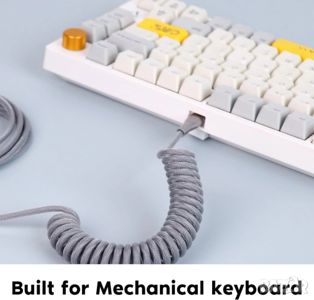 Като подарък получавате висококачествен USB C кабел: EPOMAKER Mix USB Type C Cable 1.8 m, Type C to USB A, thermoplastic polyurethane (TPU), Mechanical Keyboard Coiled Cable with Removable Aviator Connector for Gaming Keyboard (Grey).