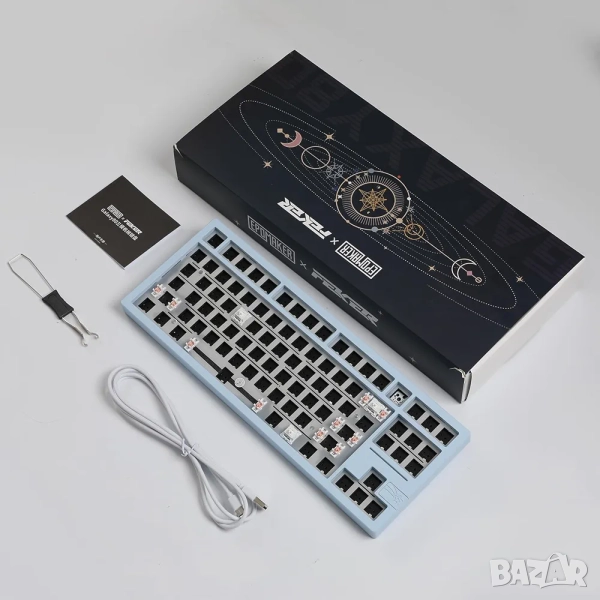 EPOMAKER x Feker Galaxy80 е висококачествена "barebone" механична клавиатура, създадена от колаборацията между двата бранда. Това не е готова клавиатура, а комплект, който позволява максимална персонализация. Той е идеален избор за ентусиасти, геймъри и всеки, който търси превъзходно тактилно усещане и звучене. ЦВЯТ: светло син.