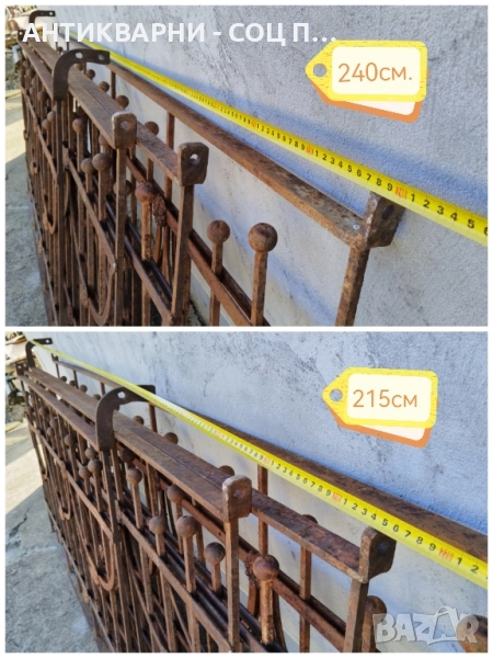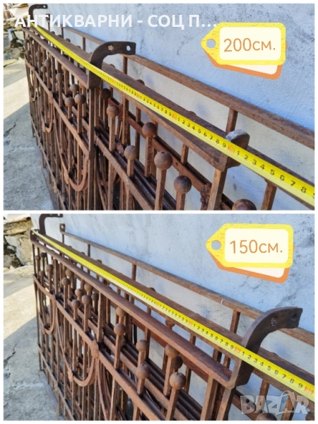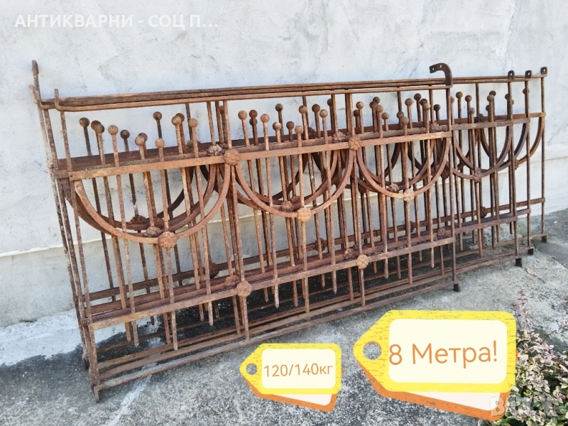 - Парапета е в перфектно състояние за годините си, напълно здрав, масивен и изключително запазен, парапета се състои от 4 панела, като всеки един от тях с различна дължина и обща дължина 8 метра, тегло между 120 и 140кг общо, дължината на всеки един панел може да се види на снимките с размерите, парапета е изцяло ръчна изработка, без абсолютно никакви заварки, изцяло ръчно кован, също така, всеки един от панелите се захваща за съседният, прекрасен за употреба на битов кът и много други, всичко е снимано подробно, размерите са на снимките!