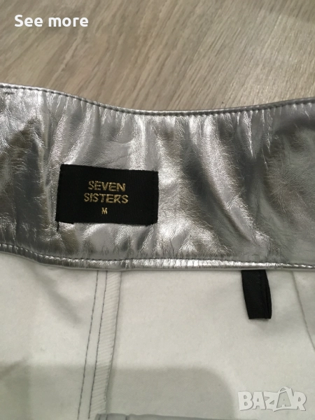 Ефектни сребърни панталонки от Seven Sisters в размер М. Никога не са носени! Дължина 37 см,талия 38 см,ханш 46 см,ширина на бедрото 35 см!Изпращам по Еконт и Спиди!