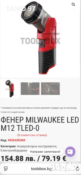 Продавам компактен лед фенер на Milwaukee в добро визуално състояние и работи отлично, внос от Франция. Обявената цена е за само фенера без батерия и зарядно. Пращаме с опция преглед и тест с куриерска фирма еконт може и лично предаване за гр. Шумен.