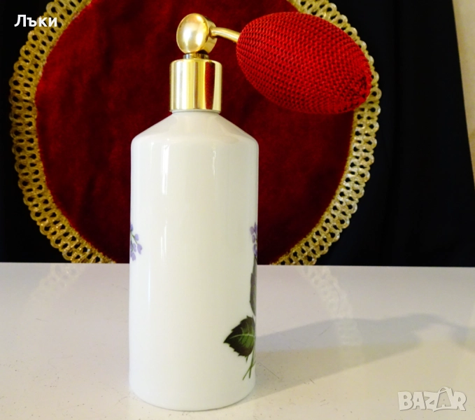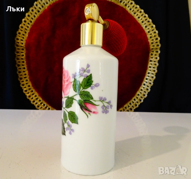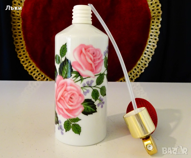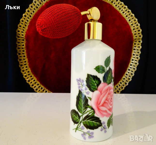 помпа,атомайзер,баварски порцелан Ilona Western Germany.Ръчно декорирана с красива роза върху