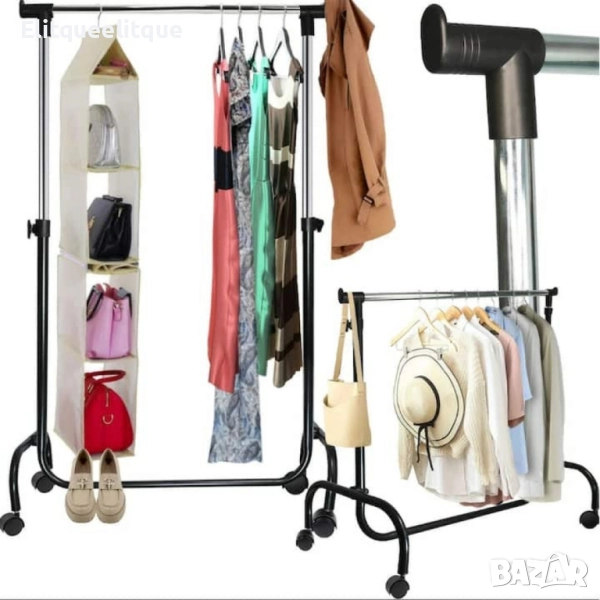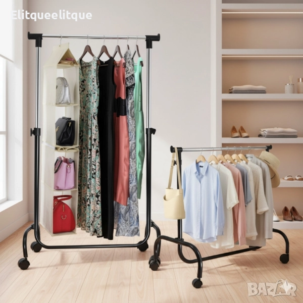 Регулируема метална закачалка на колелца – мобилен гардероб с регулируема височина