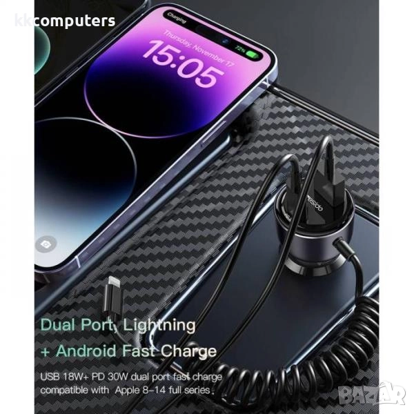 12V Зарядно за автомобил Yesido Y57 / USB 30W , PD 30W / с кабел Lightning(iPhone) / Черен / Баркод , снимка 1 - Зарядни за кола - 52172721 12V Зарядно за автомобил Yesido Y57 / USB 30W , PD 30W / с кабел Lightning(iPhone) / Черен / Баркод , снимка 2 - Зарядни за кола - 52172721 12V Зарядно за автомобил Yesido Y57 / USB 30W , PD 30W / с кабел Lightning(iPhone) / Черен / Баркод , снимка 3 - Зарядни за кола - 52172721 12V Зарядно за автомобил Yesido Y57 / USB 30W , PD 30W / с кабел Lightning(iPhone) / Черен / Баркод , снимка 4 - Зарядни за кола - 52172721 1/4