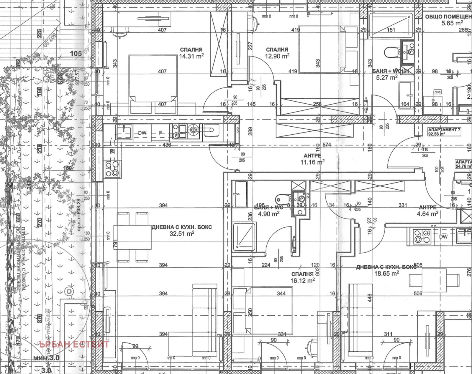 -Дневна с кухненски бокс (31.51кв.м.) -Спалня (14.31кв.м.)