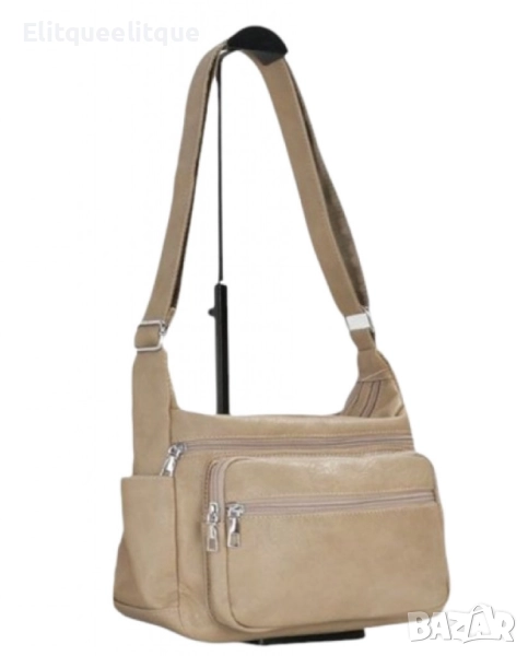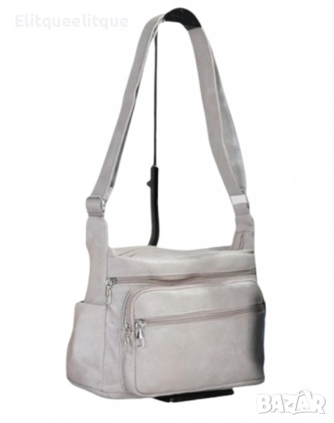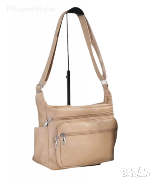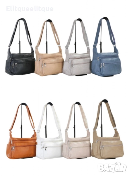 Материал: Изкуствена к о ж а; Тип: Презрамка (регулируема); Тип закопчаване: Цип; Джобове: 1 основно отделение, 1 голям преден джоб, 2 допълнителни предни джобчета с цип, 2 странични джоба; Цветове: Черен, кафяв, син, бял, сив, тъмно бежов, светло бежов, бежов.