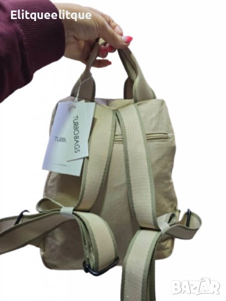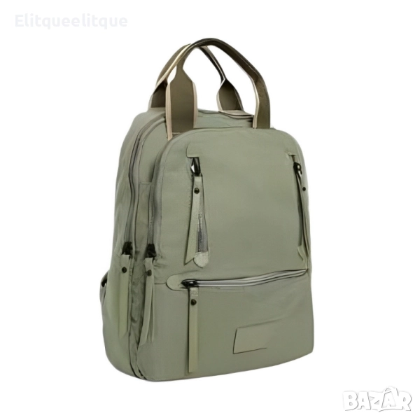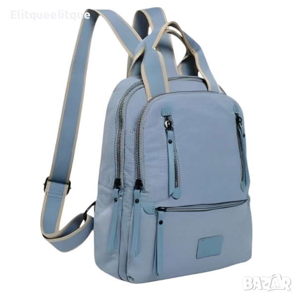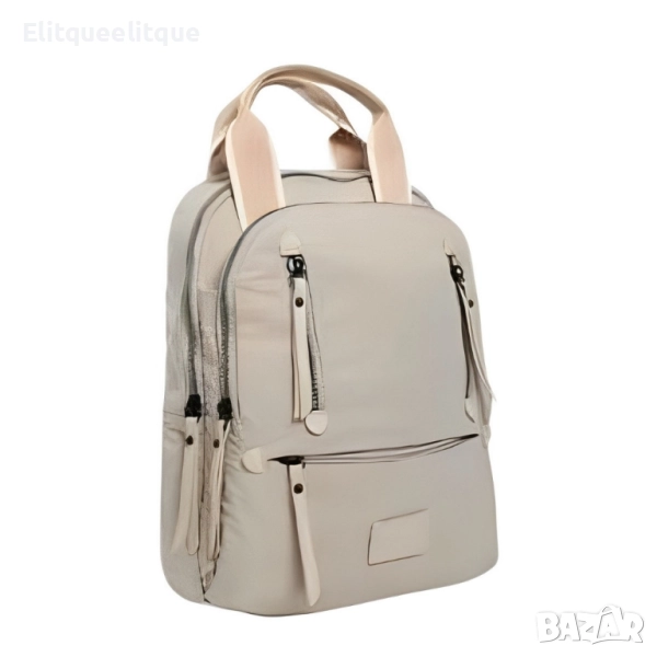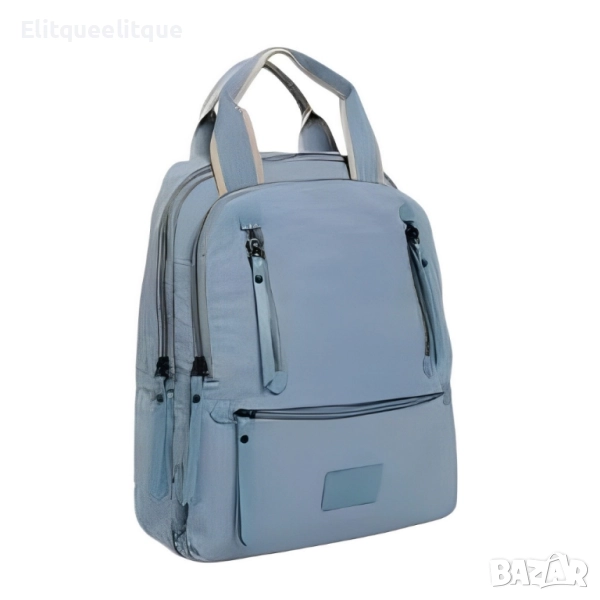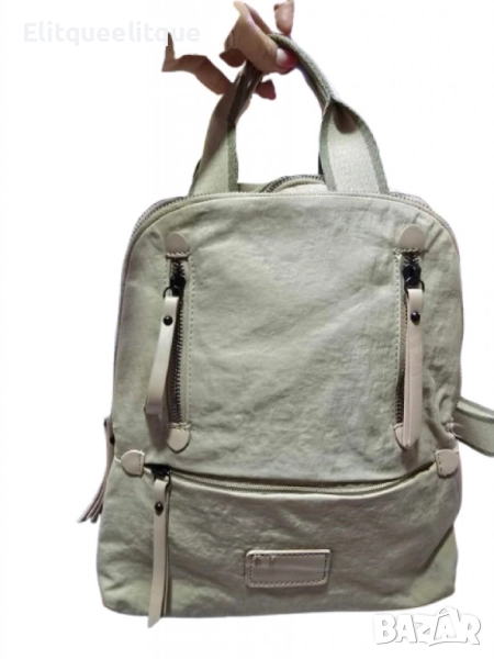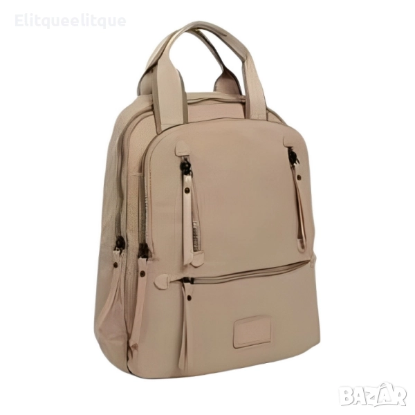 Материал: Висококачествен текстил; Брой отделения: Основно отделение, 2 външни джоба с цип, 1 заден джоб с цип, вътрешни органайзери; Презрамки: Регулируеми, подплатени; Затваряне: Ципове; Подходяща за: ежедневна употреба, пътуване, училище, офис; Цветове: Черен, бежов, светло бежов, син, зелен, тъмно син, бял.