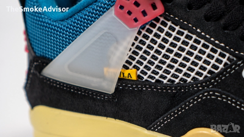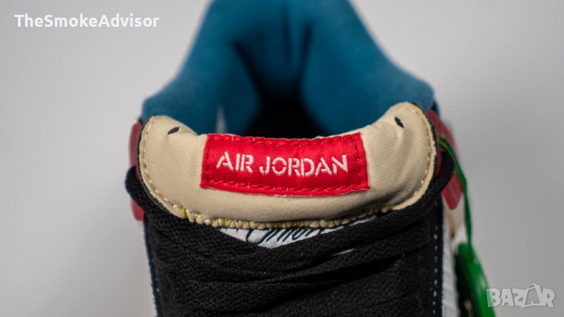 Отличителният детайл е езикът с фиксиран контрастен шев – дизайнерски елемент, който може да се „отшие“ за класически вид с изправен език и емблематичното Jordan лого върху бял фон и надпис „Union“.