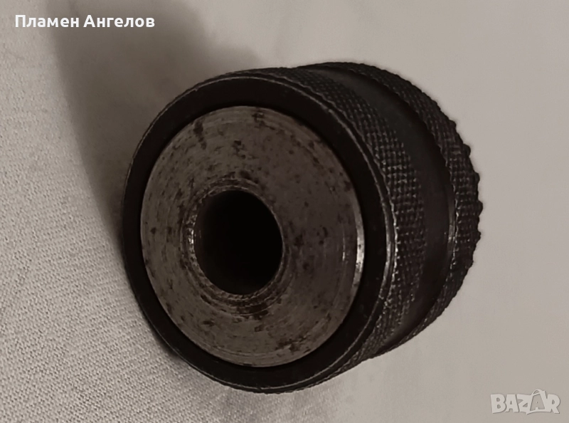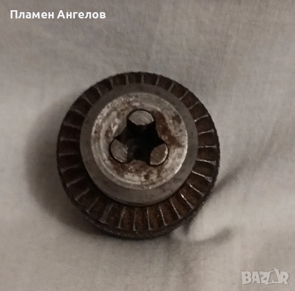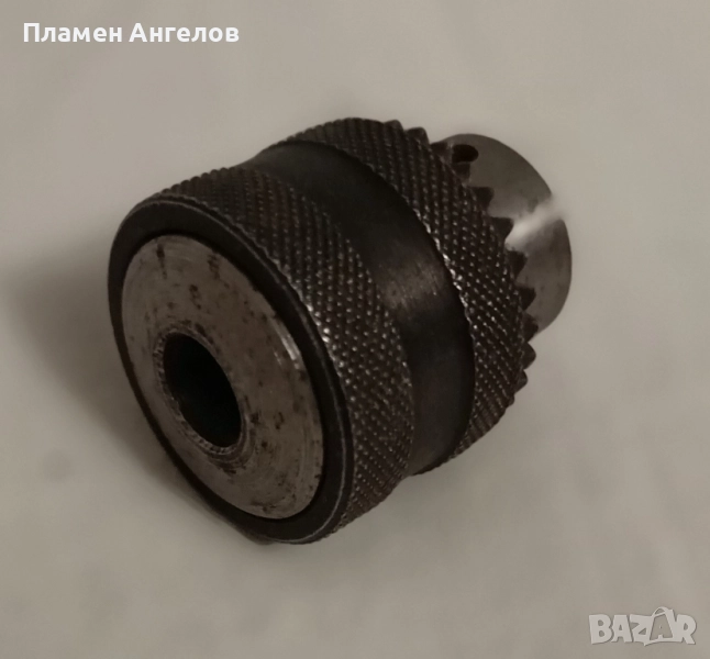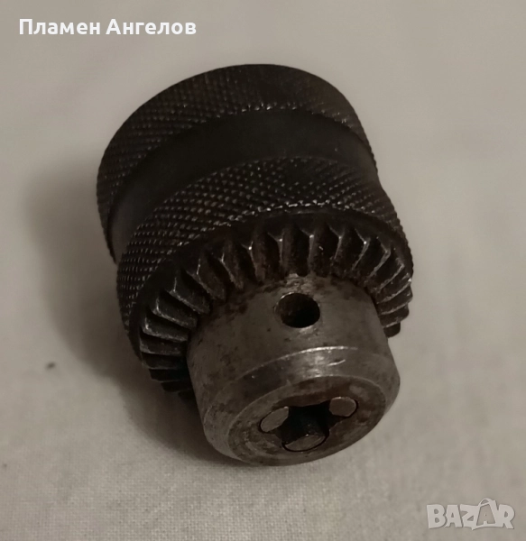 Малък патронник, българско производство за дрелки, стругче. Без ключе, загубил съм го някаде. Чисто ново, неизползвано. Размери :диаметър 32мм.,дължина 38мм.,обхват от 0 до 6мм.-максимално.Захват на конус - 10мм.