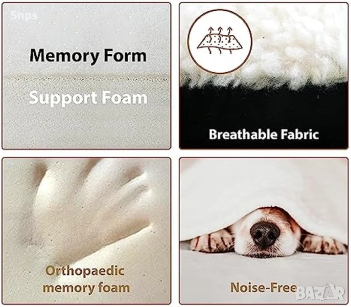 Удобно и безшумно легло за кучета: Вътрешната конструкция от мемори пяна на това легло за кучета може да стабилизира вътрешната облицовка и да разпредели тежестта върху нея, като не само прави леглото по-удобно, но и намалява шума, когато кучетата се движат по него.