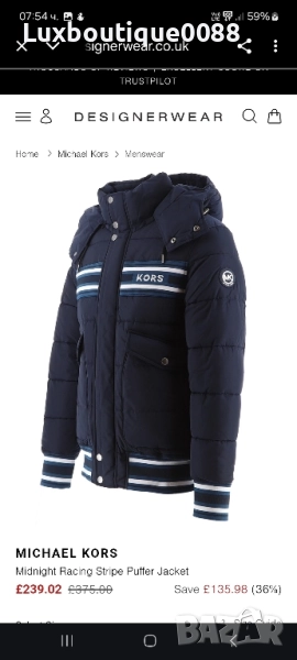 Използвано в отлично състояние зимно пухено непромокаемо яке Michael Kors L → Обява 52174145