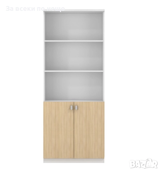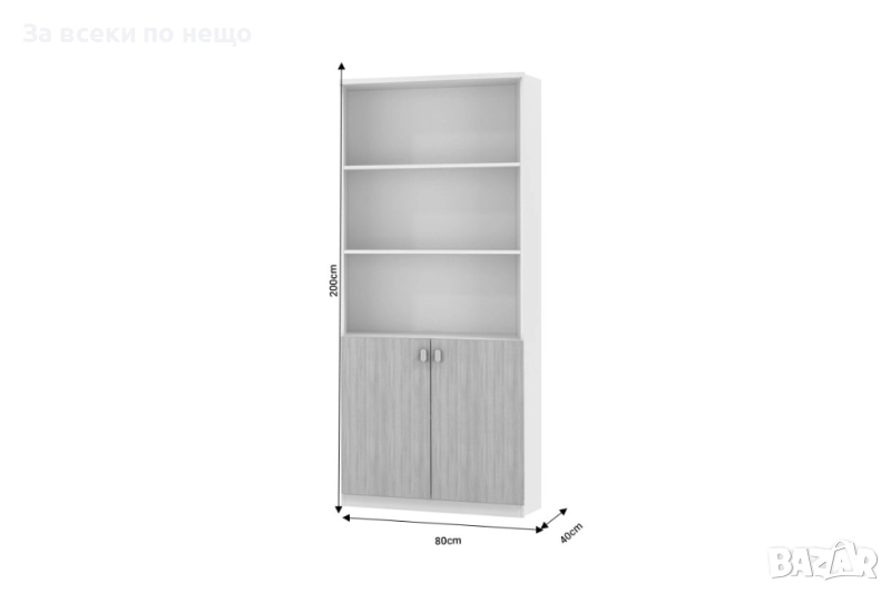 Характеристики: * Изработена висококачествено ПДЧ с меламиново покритие. * Разполага с три рафта и нисък двукрил шкаф за поддържане и съхранение на вашите вещи. * Комбинира се хармонично с останалите продукти от серията. Размер на продукта: Дължина: 80 см Широчина: 40 см Височина: 200 см