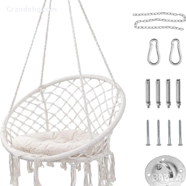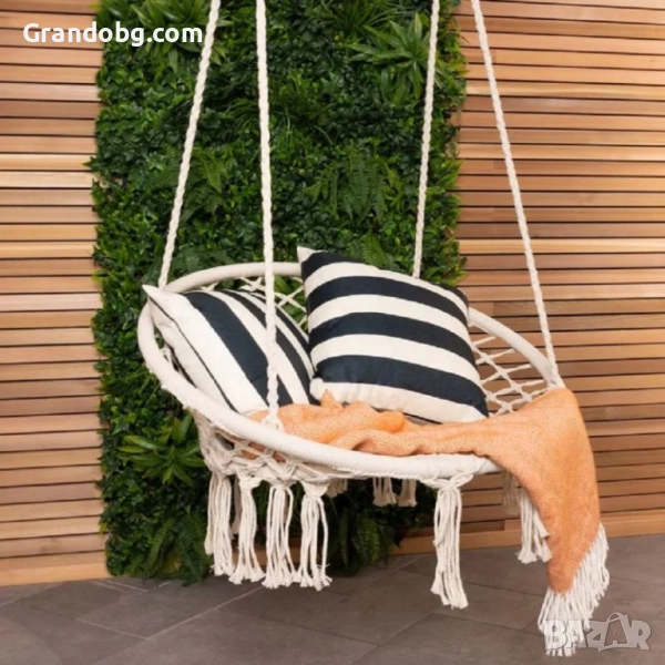 Марка: WerkBullВисящата плетена люлка е стилно и удобно допълнение към вашия интериор или външно пространство. Изработена е с внимание към детайлите от високачествен памук и метална конструкция, за да осигури комфорт и издръжливост до 150кг.