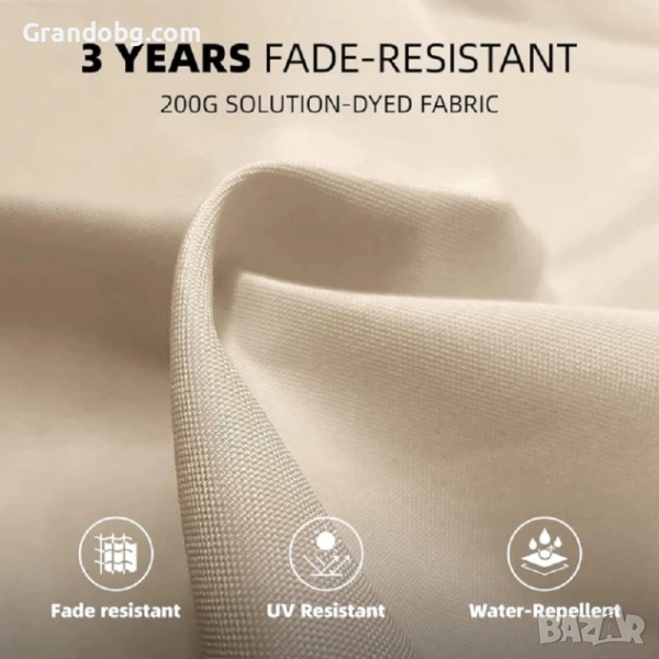 Перфектен за всяко външно пространство, включително градини, тераси и вътрешни дворове. Осигурете си сянка и комфорт през летните дни с този елегантен и функционален градински чадър.