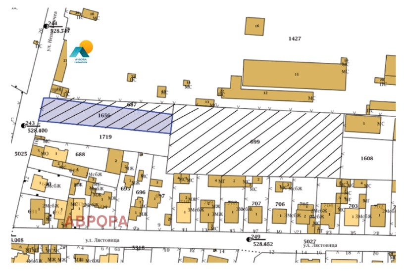 Два парцела които се продават заедно (защрихованите на снимката), подходящи за промишлено строителство с лице към ул. 'Нешо Бончев'. Плътност на застрояване- 50%, кинт-1.5, озеленяване-35%. За контакти- 0889735137.
