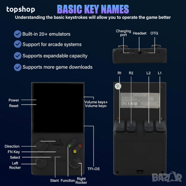 преносима игрова конзола е предварително заредена с над 40 000 игри и поддържа над 20 емулатора. С капацитет за съхранение от 256G можете да се насладите на обширна библиотека от игри, а има и опция за поставяне на допълнителна TF карта, за да разширите още повече колекцията си от игри.