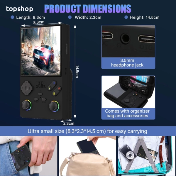 【Преносим дизайн с батерия 4000mAh】- Акумулаторната батерия с капацитет 4000mAh предлага до 10 часа живот на батерията, което я прави идеална за игри в движение. Преносимата игрална конзола е оборудвана и с вграден високоговорител и 3,5 мм жак за слушалки за завладяващо аудио изживяване. Забележка: За да избегнете прекомерна консумация на батерията и повреда, моля, използвайте включения кабел за зареждане.