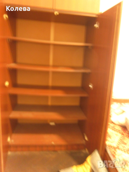четирикрилен с надстройки ,с рафтове и място за завивки и одеяла .Мебелите са