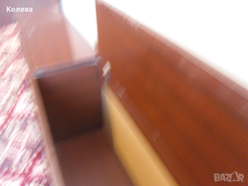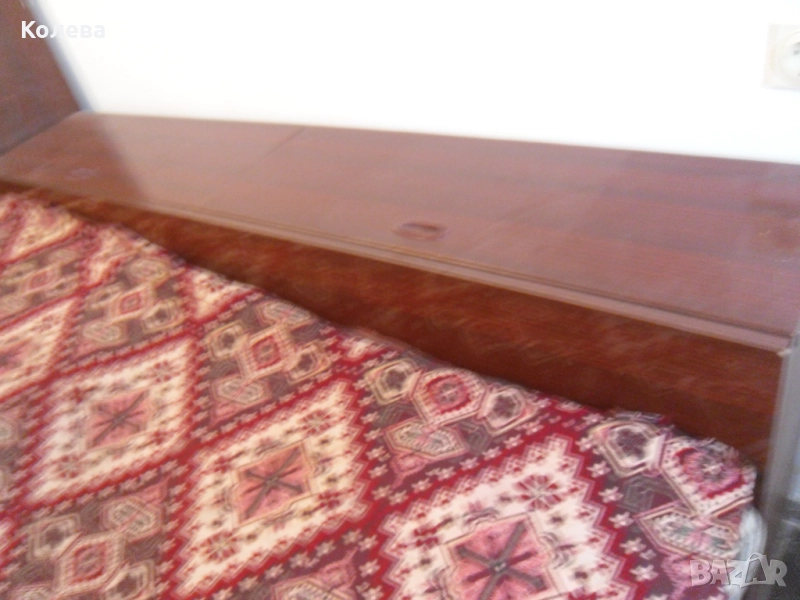 дюшеци и матраци .Спалнята е на крачета .,полирана тъмнокафява както и