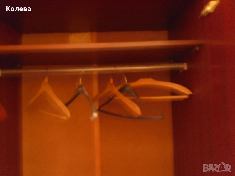 гардероба . Към спалнята се продава и гардероба , тъмнокафяв, полиран ,