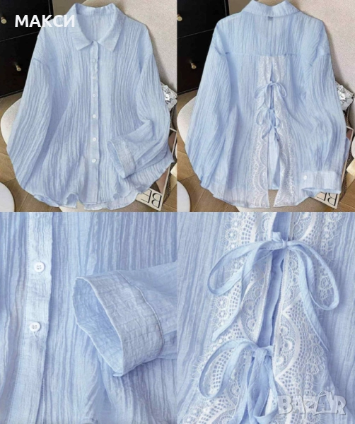 Елегантна макси релефна ефирна риза с отворен и удължен гръб +прелестна дантела + кор.връзки в светл, снимка 1 - Ризи - 52174845 1/1