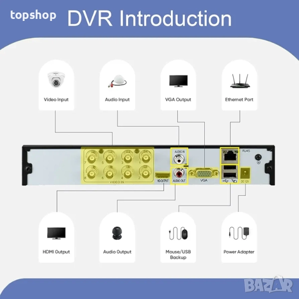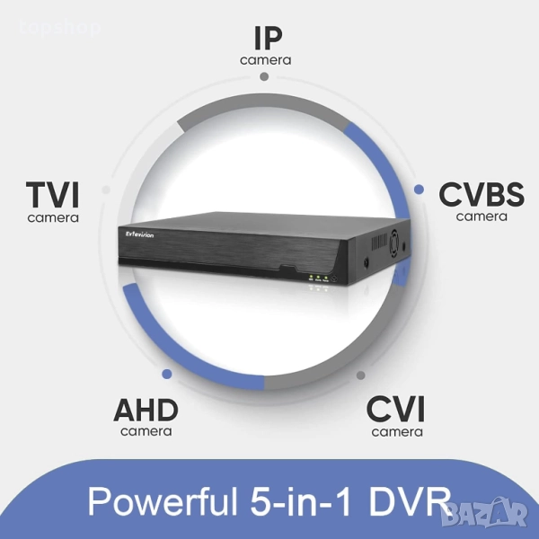 5-в-1 5MP Lite охранителен DVR】__ Хибридни възможности 5-в-1 8-канален 5MP Lite Full 1080p DVR рекордер, с технология за самоадаптивна настройка, поддържа 5 вида модели камери: 960H аналогови, HD-TVI, HD-CVI, AHD и IP камери, които поддържат onvif протокол. Дава ви гъвкавостта да добавите 8 бр. 720P, 1080P, 3MP, 4MP, 5MP CCTV охранителни камери.