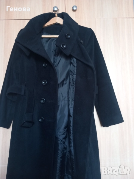 Дамско двуредно палто.Палтото е шито по поръчка и отговаря на размер 38 S-M . Носено е малко,без забележки.