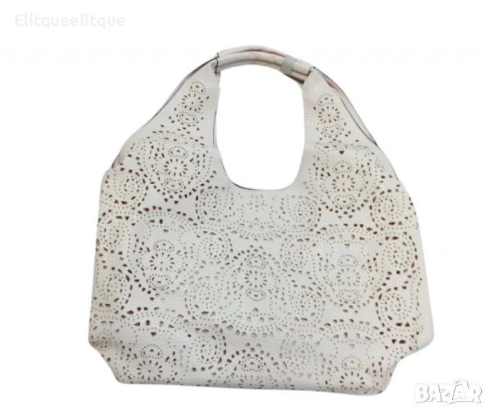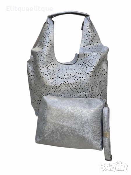 Голяма чанта: Дължина дъно: 37.0см. Ширина дъно: 11.0см. Височина без дръжките: 30.0см. Малка чанта: Дължина дъно: 25.0см. Ширина дъно: 8.5см. Височина без дръжките: 20.0см. Голямата чанта е без джобове и без хастар, а вътре в малката чанта има малко джобче с цип и два джоба за телефони. Малката чанта се слага в голямата и изпълнява функцията на несесер, също така може да се носи самостоятелно с дълга регулираща се дръжка. Голямата чанта има една дръжка, много удобна за носене на рамо, 1 дълга регулираща се дръжка, която се слага на малката чанта и може да се носи самостоятелно на рамо или по диагонал; Материал: Еко кожа, хастар-полиестер; Цвят: Бял, черен, тъмно син, светло син, сив, кремаво, бежов, златен; Поддръжка: Да се почиства с мека и леко влажна кърпа.