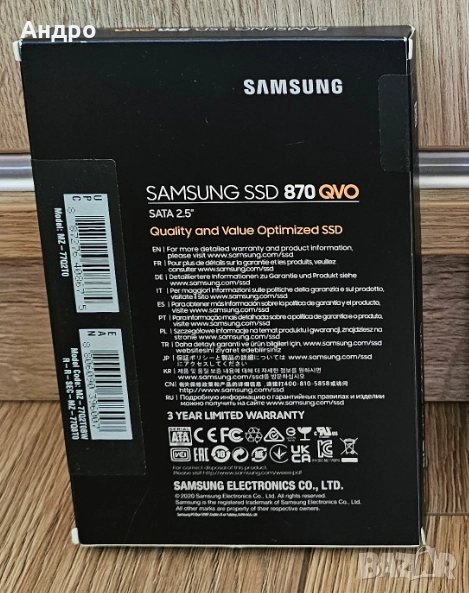 Продавам диск Samsung 2.5' SSD 2TB - 870 QVO SATA3, снимка 1 - Твърди дискове - 52175657 Продавам диск Samsung 2.5' SSD 2TB - 870 QVO SATA3, снимка 2 - Твърди дискове - 52175657 1/2