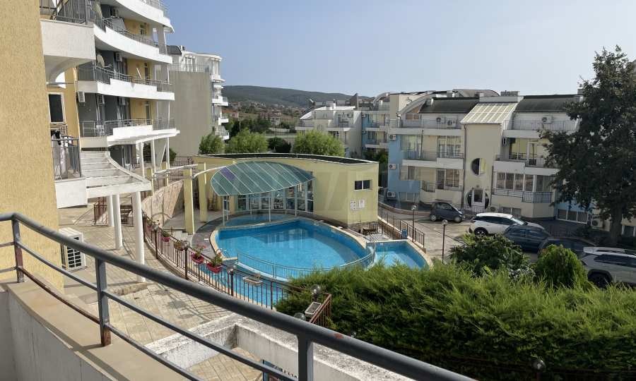 Имотът е разположен на втори етаж и има тераса с изглед към басейна. Предлага се обзаведен и оборудван, подходящ вариант е както за лично ползване, така и за инвестиция, благодарение на удобствата в комплекса.