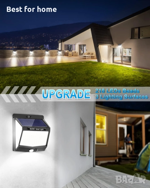 Надградете слънчевата LED градинска лампа SEZAC за открито: Оборудвана с 218 LED мъниста, 3 светещи повърхности, 3 интелигентни режима на работа и широк ъгъл от 270°, слънчевата LED външна лампа SEZAC осигурява отлична яркост и покритие за вашата градина на открито.