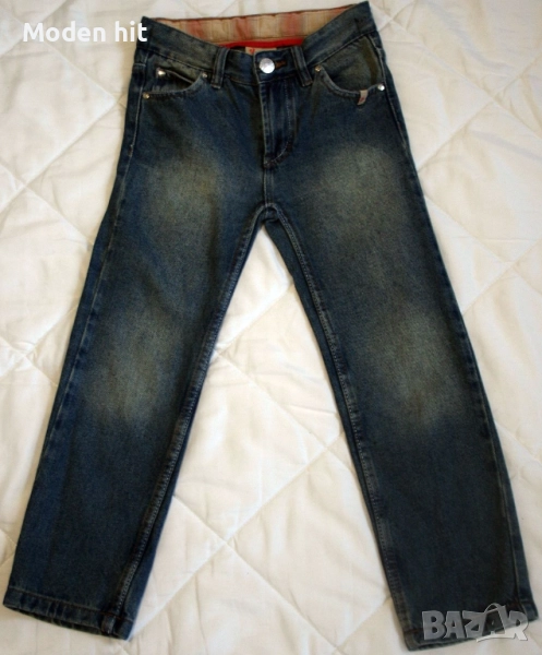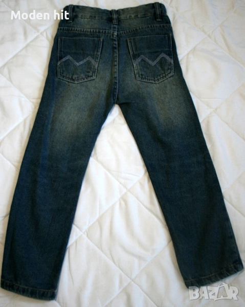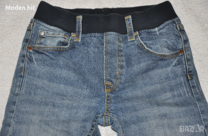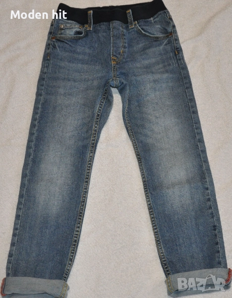 2. Цена 5 евро. Дънки H&M. По етикет са размер 122 см./6-7 г. Като нови. 99% памук, 1% еластан. Могат да се носят и с навити крачоли. Дължина по външен шев 82 см., дължина от чатала 59,5 см.; талия /ластична/ от 29 до 38,5 см.; ханш от 38 до 44 см.