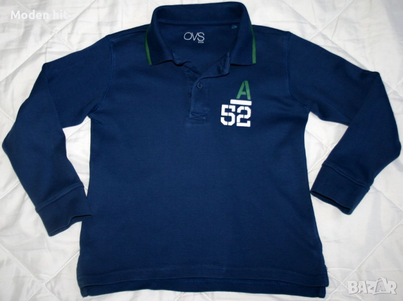 4. Цена 2,50 евро. Блузка с дълъг ръкав и якичка OVS. 100% памук. Като нова е. По етикет е размер 6-7 г./122 см. Дължина отпред: 46,5 см., отзад: 47,5 см.; мишници: 37,5 см.; ръкав: 43/37,5 см.