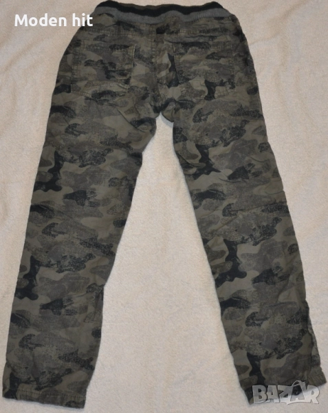 1. Цена 4 евро. Панталонче с камуфлажен принт Kiabi. С памучна подплата. По етикет е размер 7 г./120-125 см. Отлично. Дължина по външен шев 77,5 см., дължина от чатала 59,5 см.; талия /ластична/ от 26,5 до 39,5 см.; ханш 40 см.