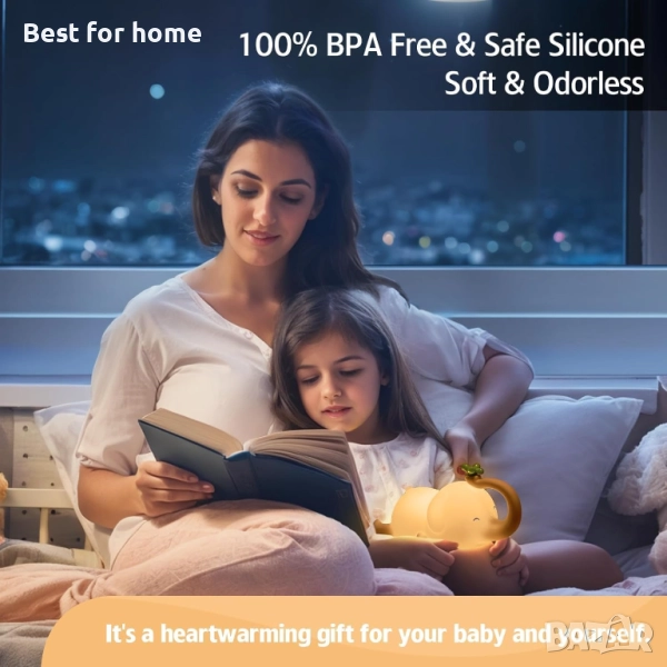 БЕЗОПАСНА МЕКАВА ЛАМПА БЕЗ BPA - Изработена от безопасен за бебета силикон без BPA, за да се гарантира безопасността, а мекият абажур във формата на слон я прави лесна за носене и устойчива на счупване. Сладката лампа за деца е не само много полезна мека нощна лампа с животинчета, но и чудесно средство за облекчаване на стреса.