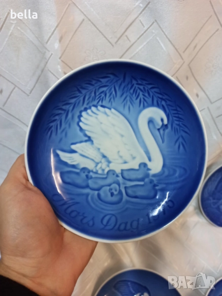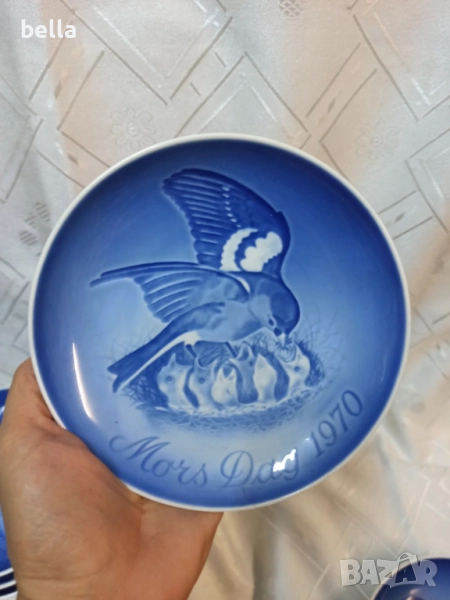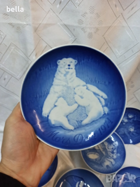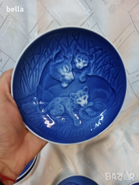 Порцеланова серия антикварни малки чинии за стена от серия Денят на майката - животни от 1970-1981 год.Всяка е с различна година всичките са с маркировки ,диаметър 15 см ,висококачествен порцелан-10 броя .Цена -100 лв(изпращам с Еконт).Цената е намалена и не се коментира.