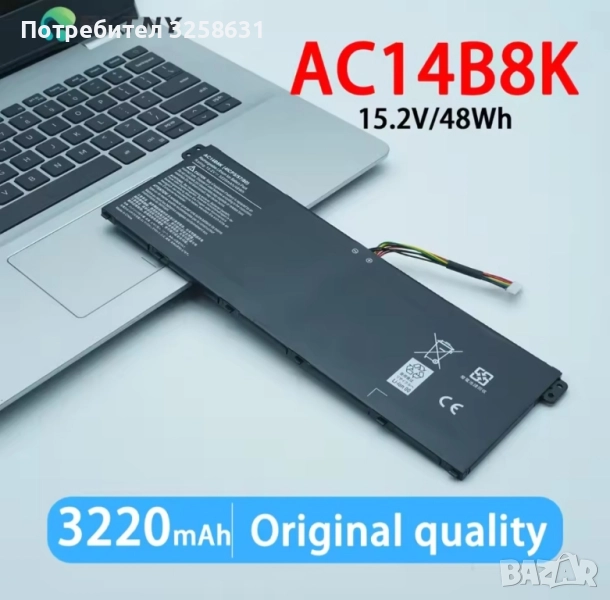 Батерия лаптоп Acer, снимка 1 - Батерии за лаптопи - 52176390 Батерия лаптоп Acer, снимка 2 - Батерии за лаптопи - 52176390 Батерия лаптоп Acer, снимка 3 - Батерии за лаптопи - 52176390 Батерия лаптоп Acer, снимка 4 - Батерии за лаптопи - 52176390 Батерия лаптоп Acer, снимка 5 - Батерии за лаптопи - 52176390 1/5
