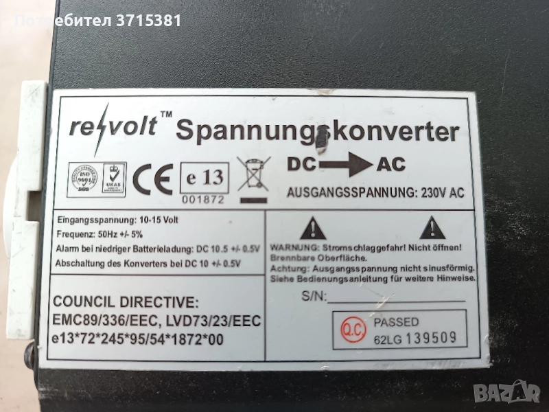 Автомобилен инвертор 200W, 12V → Обява 52176464