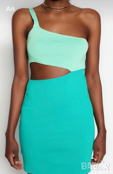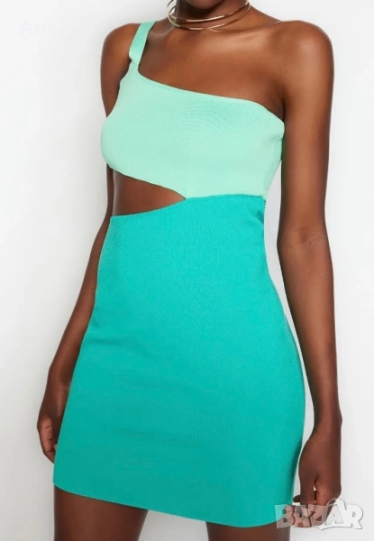 Рокля от плетиво с един ръкав, еластична, размер 38, нова с етикет.