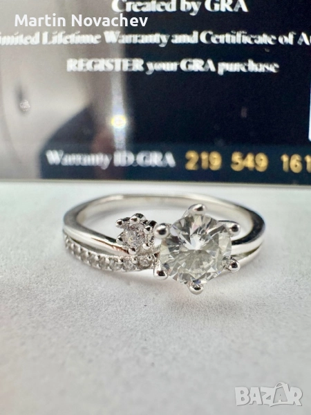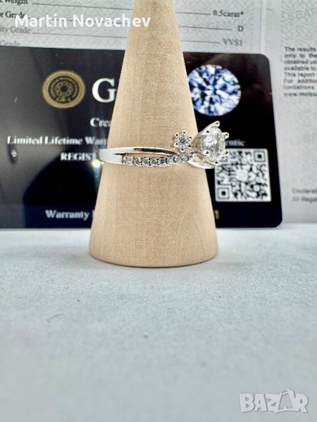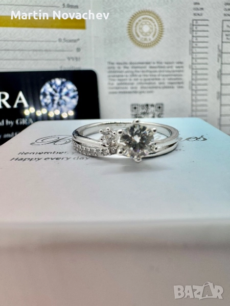 Сребърен пръстен с мойсанит (Диамант) 0.5 карата → Обява 52176971