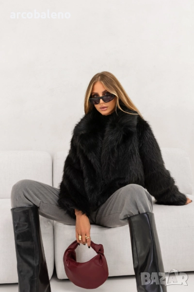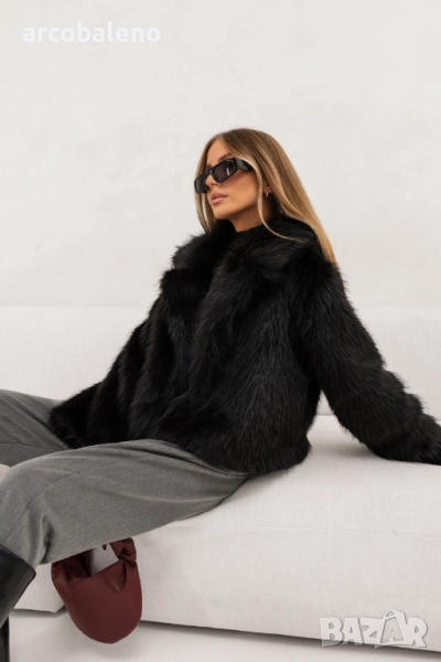 Това стилно, късо яке от изкуствена кожа е идеално за жени, които ценят стила и комфорта. Пухкавата му текстура и елегантната яка му придават изтънчено излъчване. Изглежда страхотно в комбинация с дънки, елегантни панталони или ботуши.