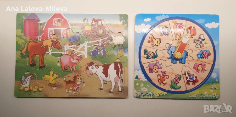 Дървен пъзел с часовник – Животни – 2.5 Евро.