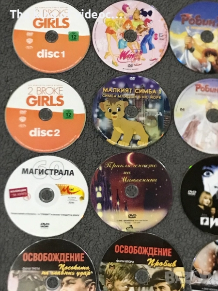 Продавам 35 броя оригинални DVD филма . Анимации , игрални филми , български и музика . Всички анимации са озвучени на български език , 2 български филма , 4 музикални , 20 игрални и 9 анимации . Филмите се продават без кутии , само дисковете . Продават се заедно . Обща цена за всички заедно 10 евро . ( Цената е крайни и не се коментира ) . Изпращам с Еконт или Спиди .