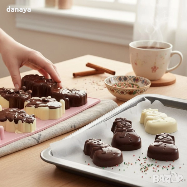 Коледна силиконова форма за печене с Дядо Коледа и Снежко. Силиконова форма за коледни мъфини, шоколад или десерти – идеалният помощник за празнично печене у дома. С нея лесно създавате вкусни сладки в забавни коледни форми – Дядо Коледа и снежен човек, които радват деца и възрастни.