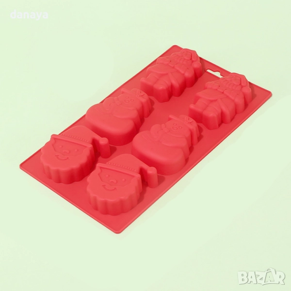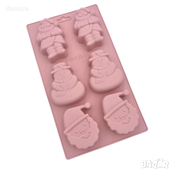 Съдържа 6 гнезда – Дядо Коледа, снежен човек, лице на Дядо Коледа