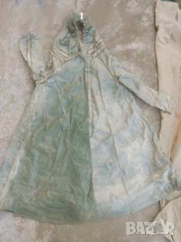 Защитните химически облекла са дебели гумирани много здрави, могат да се ползват с години с качулка са и копчета за закопчаване отпред. Останаха ми само две гумирани наметала и една каска. При закупуване на повече неща (а и от другите ми обяви), естествено, че ще има МНОГО ГОЛЕМИ ОТСТЪПКИ!