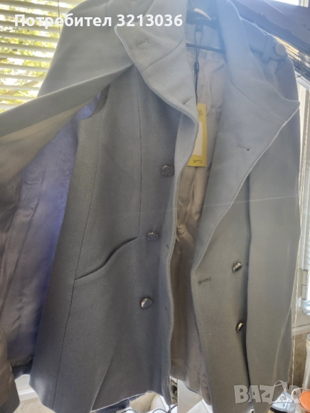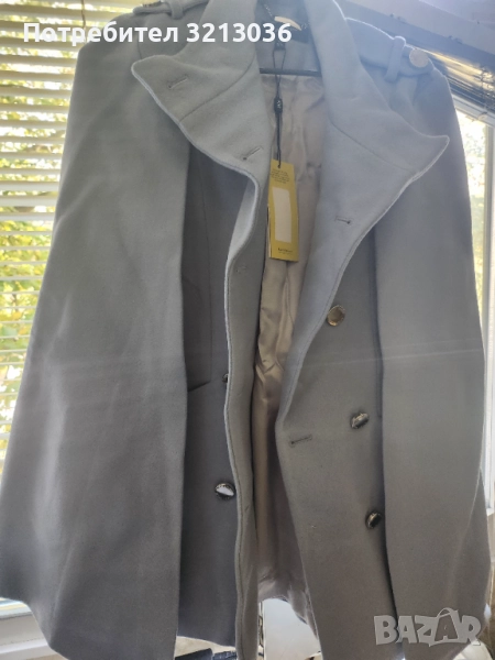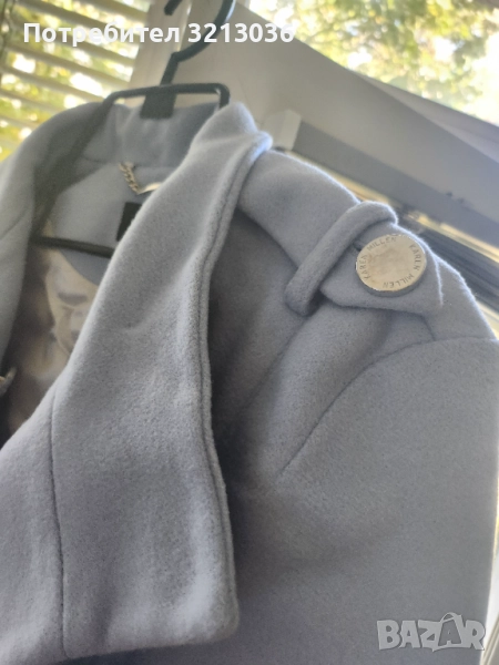 Елегантно,ново,вълнено с етикет палто пелерина,светло синьо,размер UK 8,eu 36.с подплата,материята е 70% вълна,10% Кашмир,20%полиамид.Поръчано от Великобритания. С опция преглед и тест.